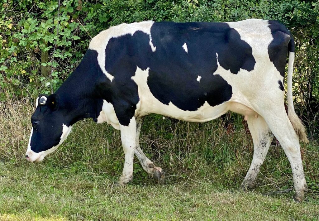 Holstein Friesian are a large breed of dairy cattle, with a high milk yield. They are identifiable by their sharply defined black and white spotted markings.